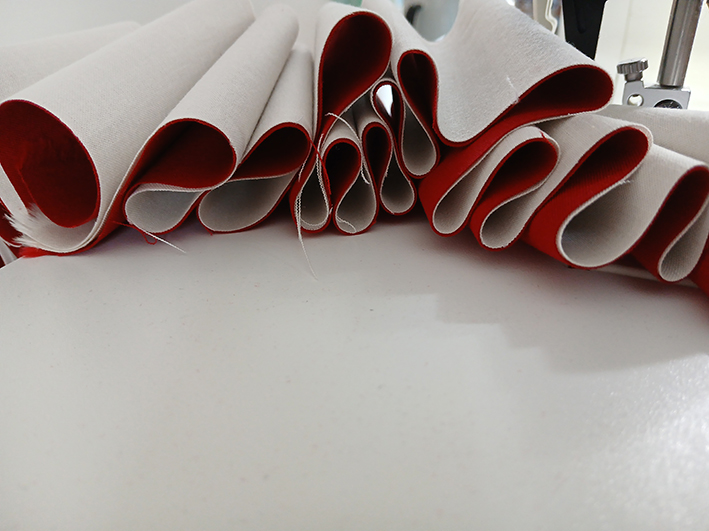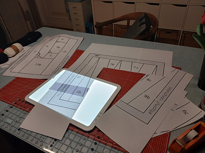 Beim Zusammennähen der einzelnen Bahnen habe ich mich immer mal wieder kurz gefreut, wenn alle Linien so perfekt zusammenkommen, wie auf diesem Foto. Verstehen wahrscheinlich nur Nähnerds. Von hinten sieht man gut, wie viele Nähte da aufeinandertreffen und ihren Platz finden wollen.